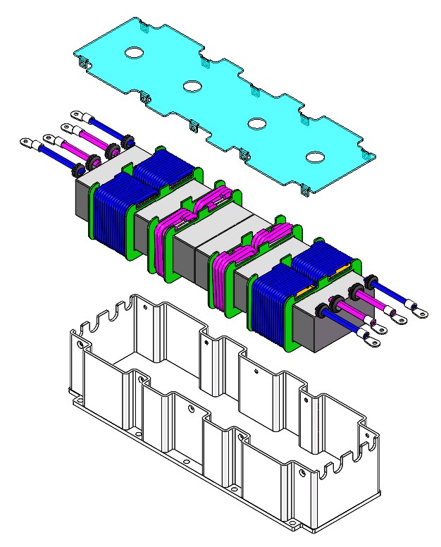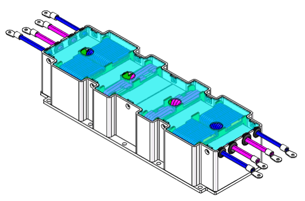 ★ As the product is intended for mobile scenarios, it demands high vibration resistance and reliability. Therefore, the transformer features a fully aluminum alloy potting design. The transformer is placed in an aluminum casing and potted with highly reliable thermally conductive silicone gel. The transformer assembly is installed on the customer's water-cooling plate to ensure effective heat dissipation during operation and high durability.